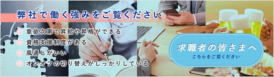 若い方・未経験の方でも、仕事のコツやノウハウをイチからしっかり学べますので、ご安心ください。